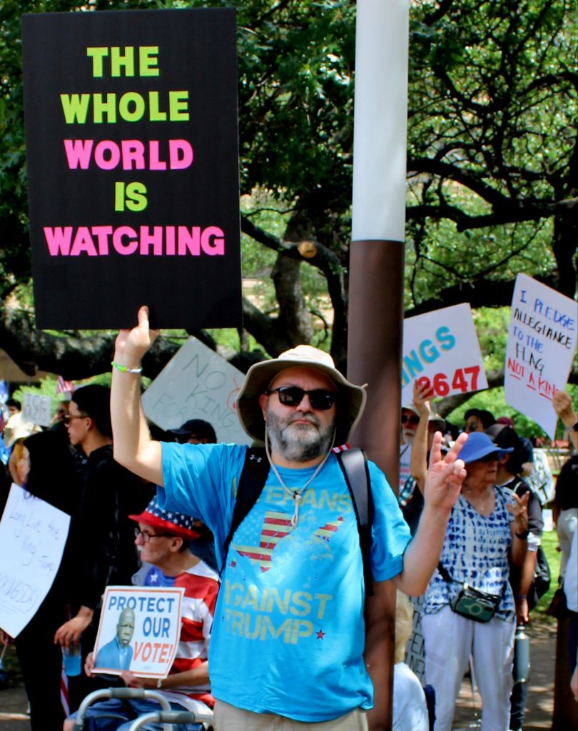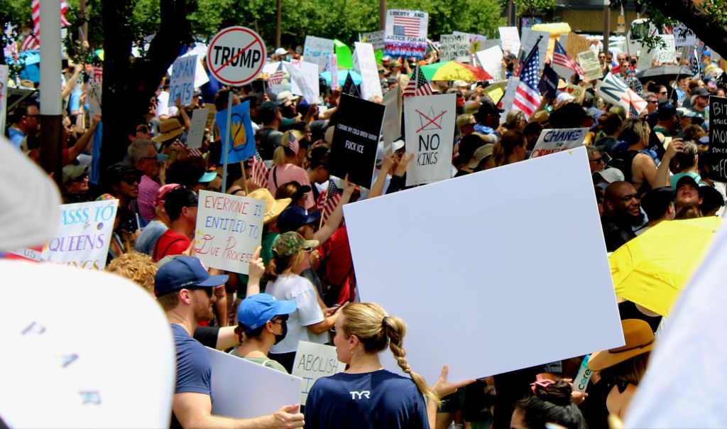 I’m currently sunburned to a crisp, sipping on a warm cup of Earl Grey, and going through the photos of today’s “No Kings” protest.