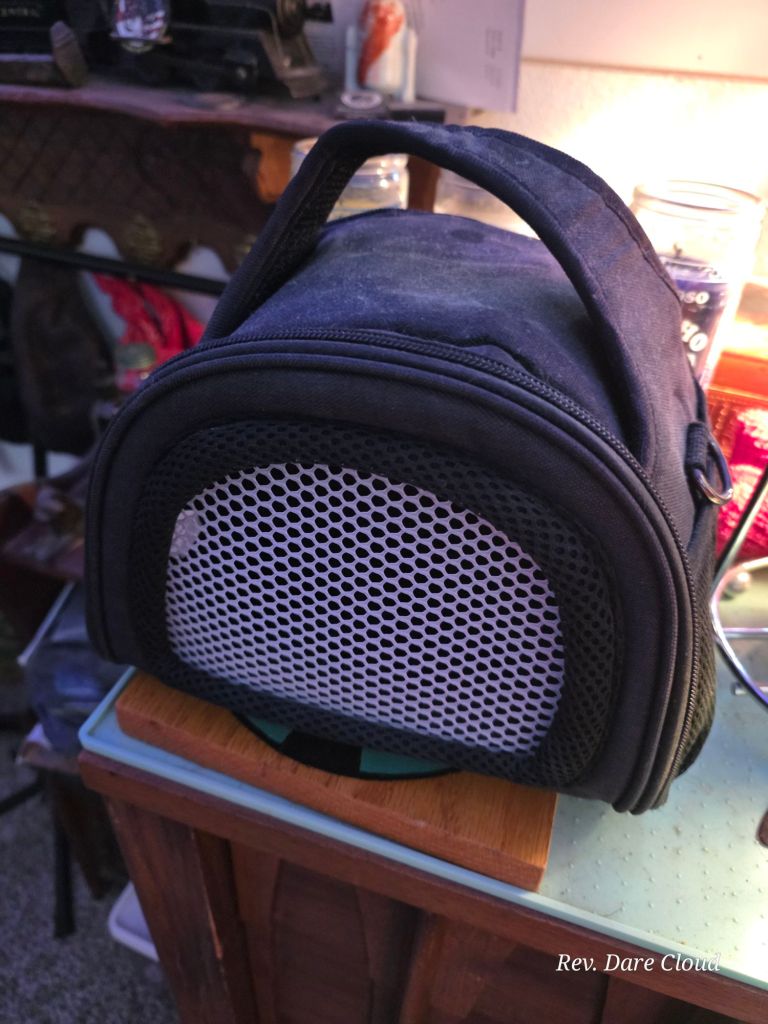 Into the Piggert Purse with you. If you’re nice, I’ll take you to North Park Mall so you can hiss at Poons.