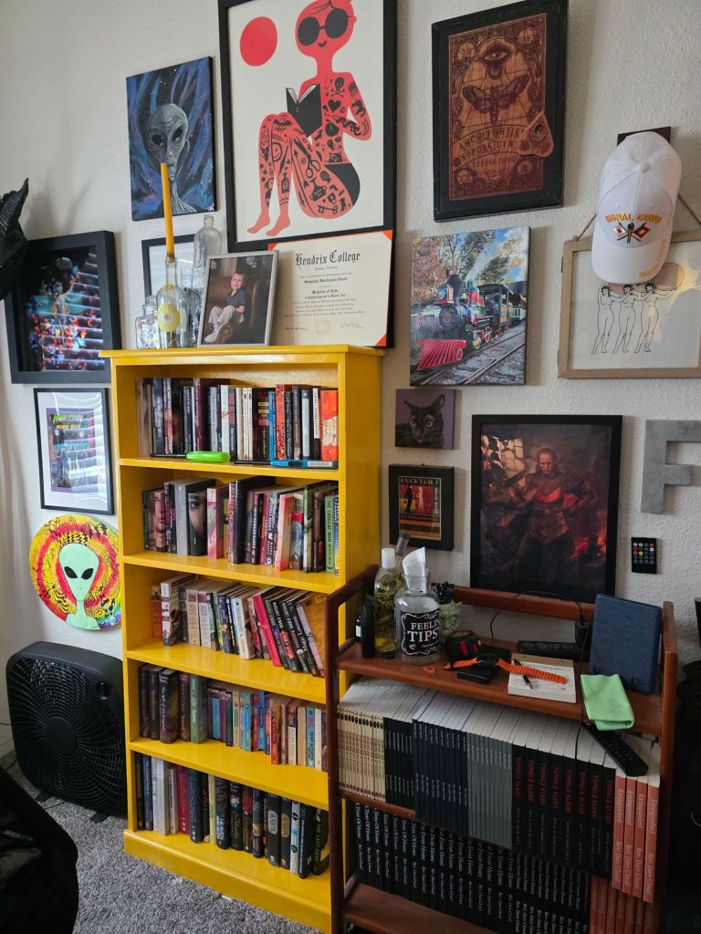Various novellas, books, and tomes to tickle the fancies of no one, especially since no one comes upstairs. Elvis had the same rule, but I don’t keep underage women locked up there. So…not like Elvis? Maybe?