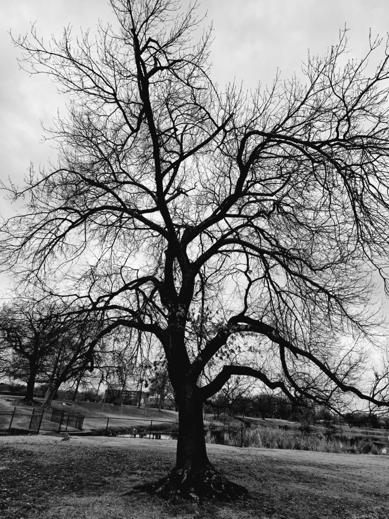 We haven’t spoken since. I don’t have time for that kind of narrow-minded bullshit in middle-age. Instead, I choose to speak to this tree. When I walk the park in the mornings, I make sure to touch it and wish it well. This tree has seen things t’would put modern society in therapy.