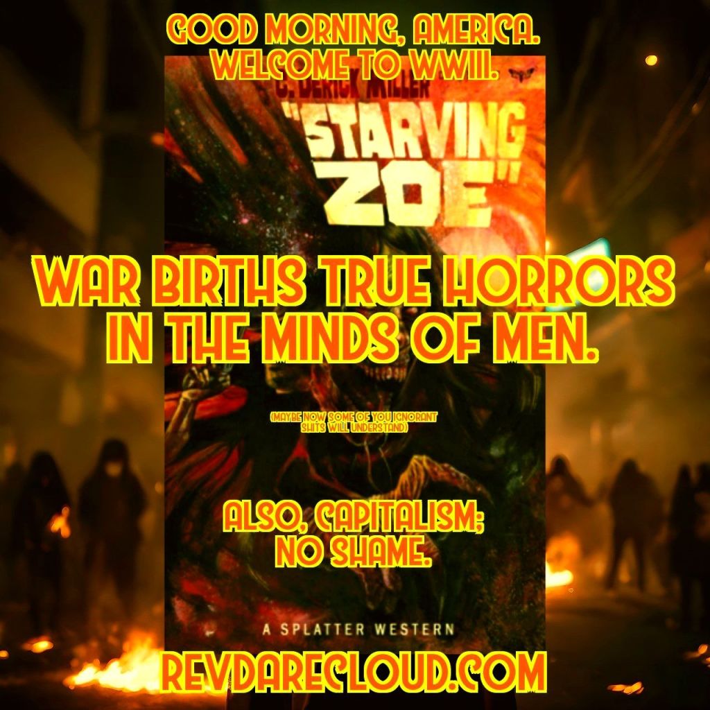 is a Dallas author, musician, and gonzo journalist. Some of his works include the controversial splatter-western Starving Zoe (written as C. Derick Miller), the Taste of Home trilogy, and the ongoing Jim Walker series. He is also the co-host of the American Justice Podcast and Senior Writer/Junior Producer for AtuA Productions LLC. His literary crushes are (of course) Hunter S. Thompson, J.D. Salinger, and Kevin Smith. Preach truths, toke jokes, and shoplift Amazon.